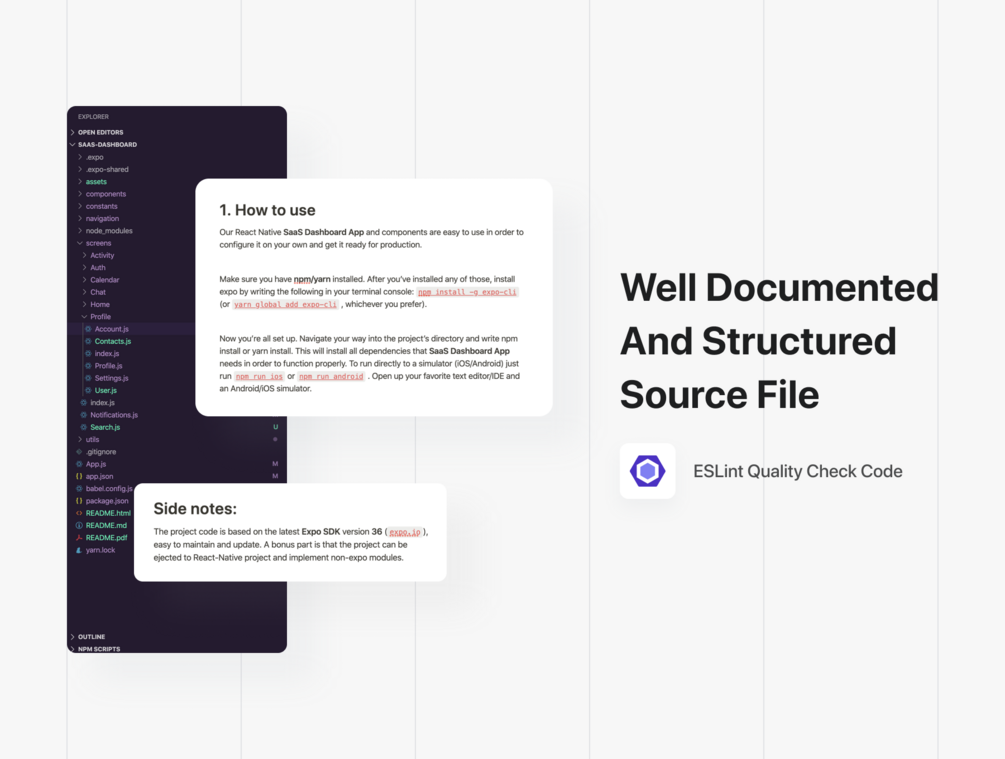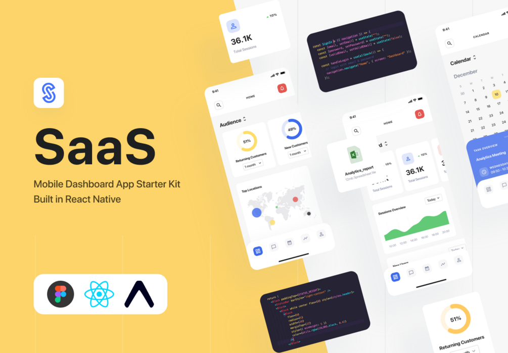 Go from design to production faster than ever before with our fully coded SaaS Dashboard App Starter Kit, designed in Figma and built from the ground up in React Native.